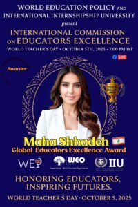 مهى شحادة تحصد جائزة التميّز التربوي العالمي 2025 لقيادتها المبتكرة في التعليم.