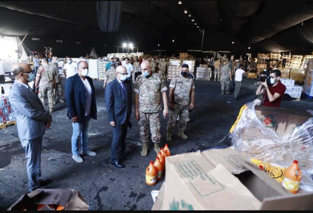 تفقد سفير المملكة المغربية الاستاذ محمد كرين على تسليم المساعدات التي ارسلتها المملكة الى لبنان الى قيادة الجيش اللبناني في مركز البيال في بيروت